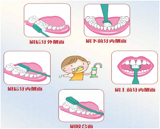 (6)將牙齒分為了6個(ge)區域,每個(ge)區域一(yi)個(ge)個(ge)進行,保證牙齒正面,內側面以(yi)及咬合面都(dou)刷到。
