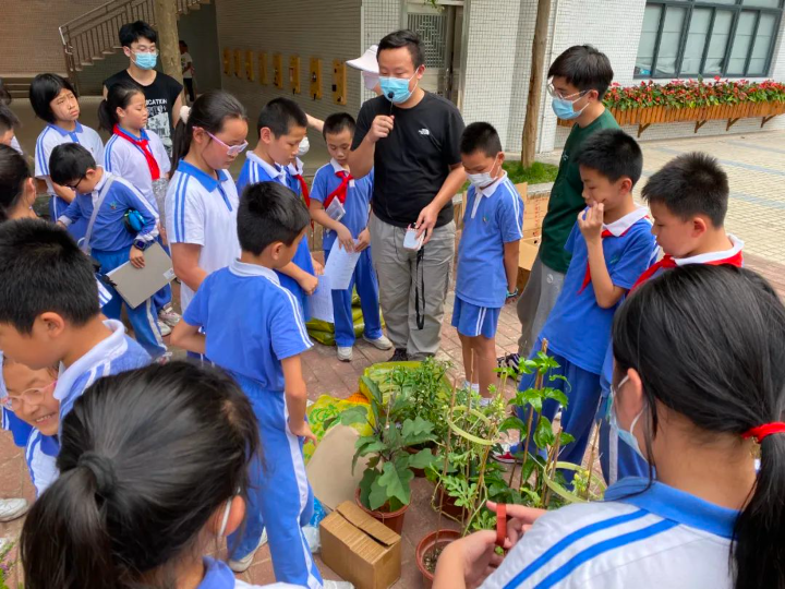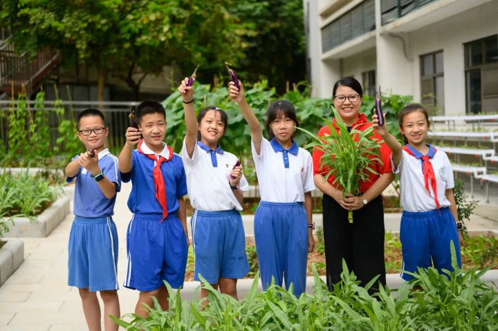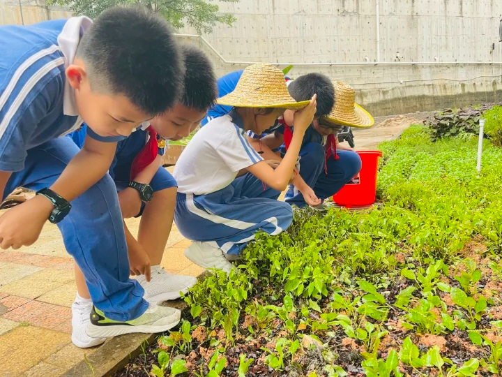作為省級勞動教育特色學校,龍華教科院附小持續開展系列化、體驗式活動課程,利用校園空間,帶領學生依據時令種植瓜果蔬菜、花木、中草藥等,品類高達百余種,還通過多學科統整,逐步探索“勞動教育+學科教學”的新路徑。